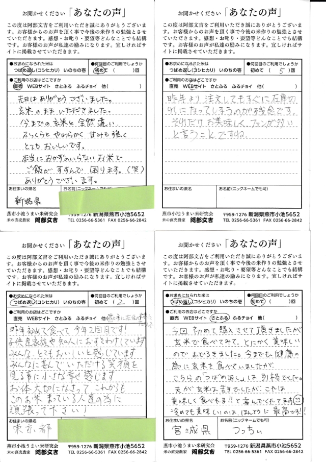 事務所に居ない時はほぼ田んぼにおります。着信履歴より後ほど私よりお電話させていただきます。 080-5064-0419 携帯ページ |
